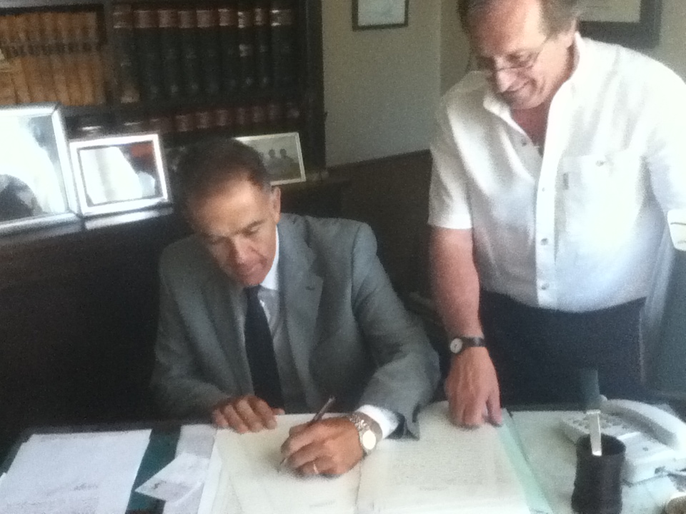 En el acto donde se firmó la escritura estuvieron presentes el presidente de la entidad Dr. David Cordeviola, el secretario Dr. Sergio Volante, el vicepresidente Dr. Ricardo Mauhourat, el Consejero Dr. Gabriel Gullón y el Presidente de la Asociación de Abogados de Tandil Dr. Atilio Della Maggiora.