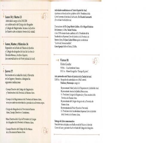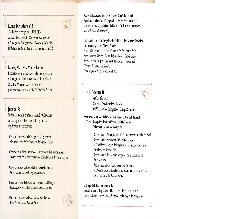 El acto conmemorativo se llevará a cabo mañana viernes 18 de marzo en las instalaciones de Tribunales a las 11.30 hs., en tanto que las actividades académicas, con conferencias de destacados juristas y especialmente de los presidentes de la Corte de Justicia de la Nación y de la Suprema Corte de la provincia, serán hoy jueves 17 de marzo a las 18 en el Teatro Español de Azul.