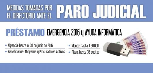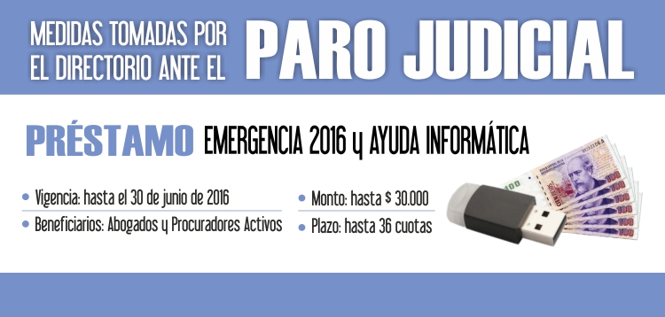 En este marco, el Directorio en su sesión ordinaria de los días 12 y 13 de mayo aprobó una línea de préstamos personales para sus afiliados denominada de Emergencia Judicial y Ayuda Informática 2016.