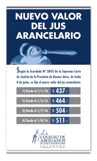 Se informa sobre la Acordada 3803/16 de la SCJBA, de fecha 8 de junio ppdo., por la cual se fija el valor del Jus Arancelario con vigencia: