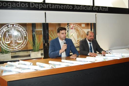 Este lunes 3 de septiembre, en la sede del Colegio de Abogados del Departamento Judicial Azul, el Presidente Dr. Gastón M. M. Argeri junto al Secretario del Consejo Directivo, Dr. Mauro Grandicelli tomaron juramento de Ley a los nuevos matriculados que ejercerán la profesión.