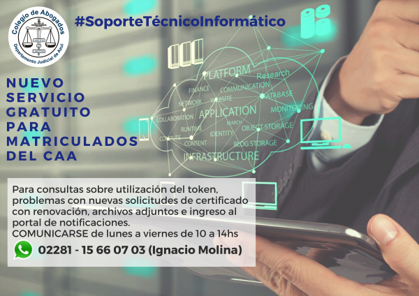 Ante cualquier duda, nuestros matriculados pueden utilizar el SERVICIO TÉCNICO INFORMÁTICO GRATUITO del Colegio Departamental, de lunes a viernes de 10 a 14hs comunicándose al (02281) 15 660703. Para acceder al servicio, simplemente deben informar su nombre completo, tomo y folio a nuestro Técnico Informático Ignacio Molina. Para conocer más detalles sobre este servicio, haga click aquí