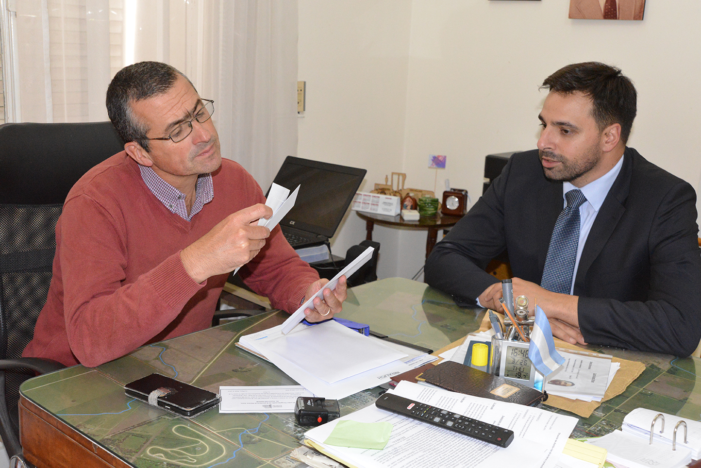 Previamente, el Presidente Dr. Gastón Argeri, mantuvo un ameno encuentro con el Intendente Lic. Maximiliano Suescun en su despacho, con el objetivo de invitarlo personalmente a los Actos Conmemorativos por el 90° Aniversario del Colegio Departamental y dialogar sobre diferentes temas de actualidad abriendo la posibilidad de que ambas instituciones puedan articular en proyectos o acciones conjuntas.