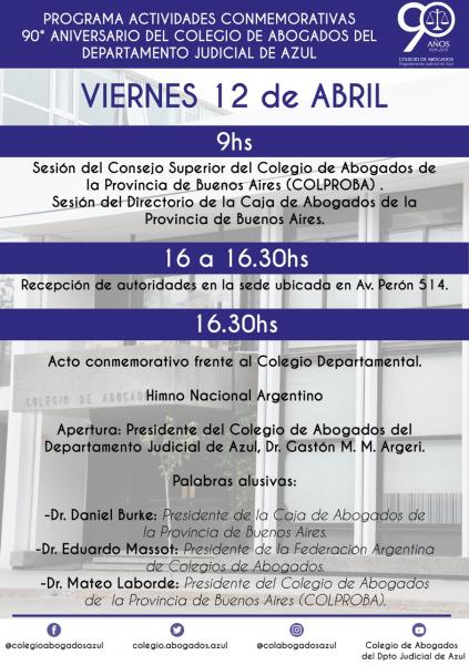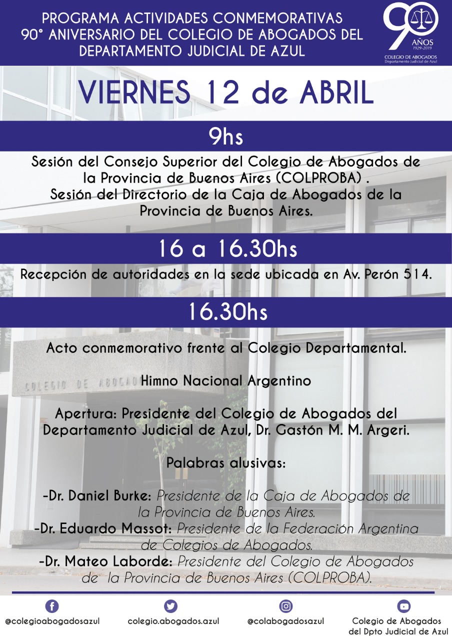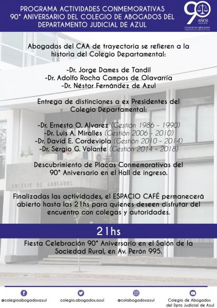 Invitamos a toda la comunidad del Departamento Judicial Azul a sumarse a las distintas actividades para celebrar la historia, el presente y el futuro del CAA. Detallamos a continuación el CRONOGRAMA previsto.