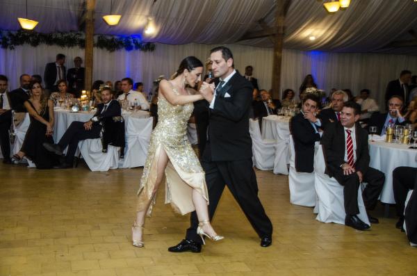 Abrieron la noche los bailarines y docentes del Taller Municipal de Tango de Azul, Natalia Latini y Sebastián Zapulla quienes han representado a la Argentina en el Festival Internacional de la UNESCO además de haber realizado giras por Austria, Turquía y Hungría.