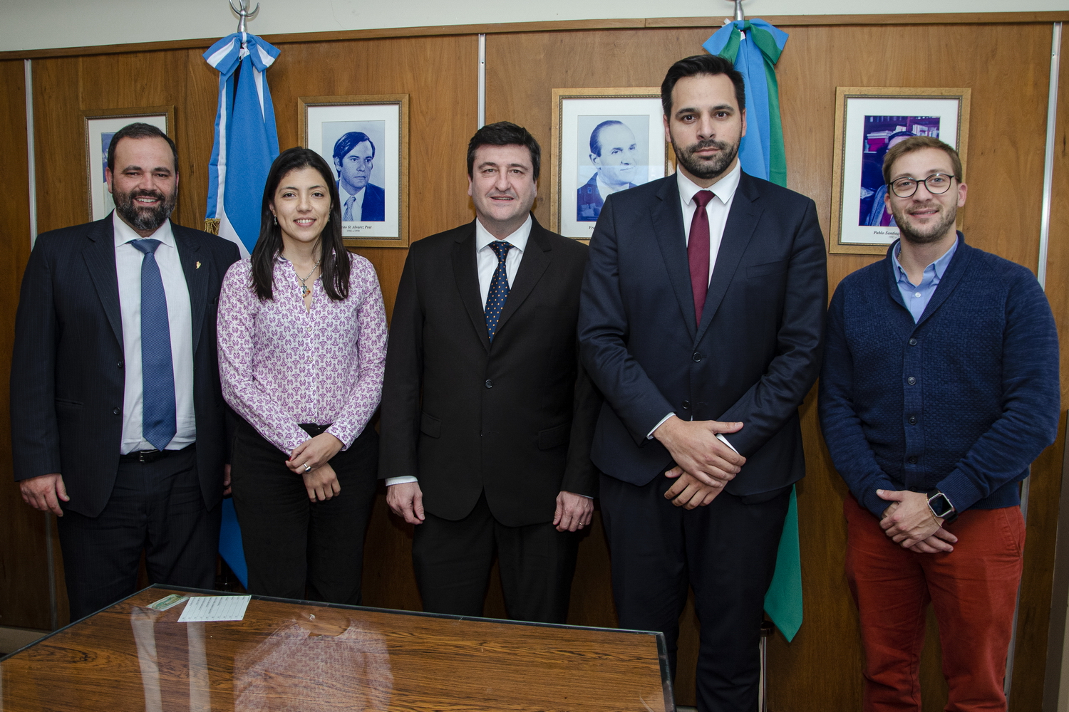 El presidente del CAA, Dr. Gastón Argeri junto al secretario Dr. Mauro Grandicelli, la prosecretaria Dra. Gabriela Alvarez Morello y el tesorero del Consejo Directivo Dr. Lucas Sanz; mantuvieron esta reunión con el Dr. Mateo Laborde.