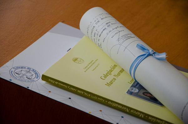 Las colegiadas y colegiados (acompañados por familiares, amigos y colegas) recibieron la credencial, normas de ética y título; siendo invitados a participar activamente en los Institutos, Comisiones y actividades del Colegio de Abogados Departamental.