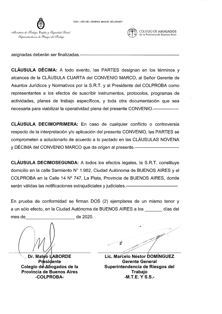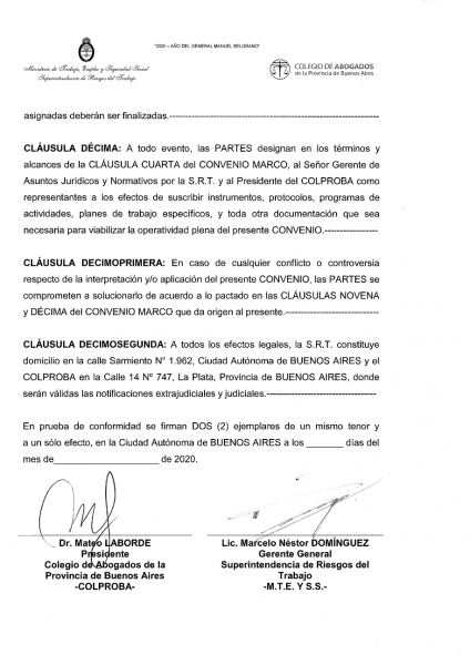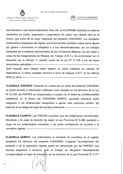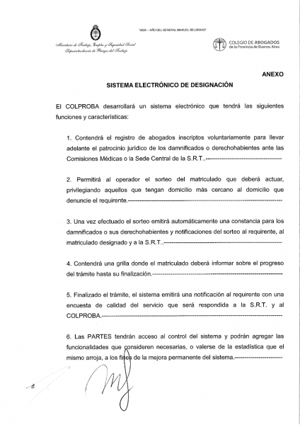 ColProBA firmó un convenio específico con la SRT que habilita a las/las abogados/as que se hayan inscripto previamente en los registros que llevarán los Colegios de Abogados Departamentales, a ser sorteados para patrocinar a los trabajadores y trabajadoras que carezcan de letrado de su confianza en el ámbito de las Comisiones Médicas. Para dar patrocinio ante las Comisiones Médicas, inscríbase aquí: www.acom.org.ar