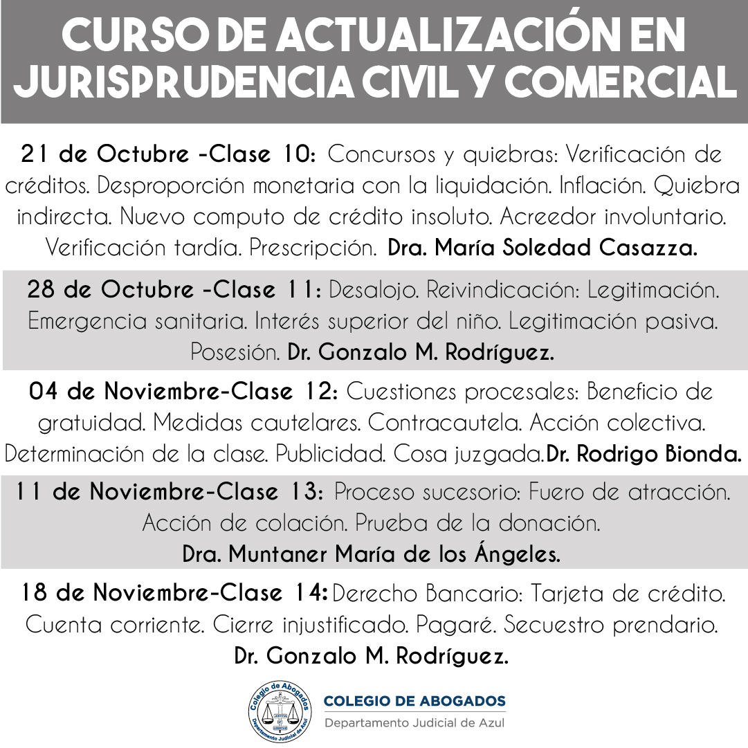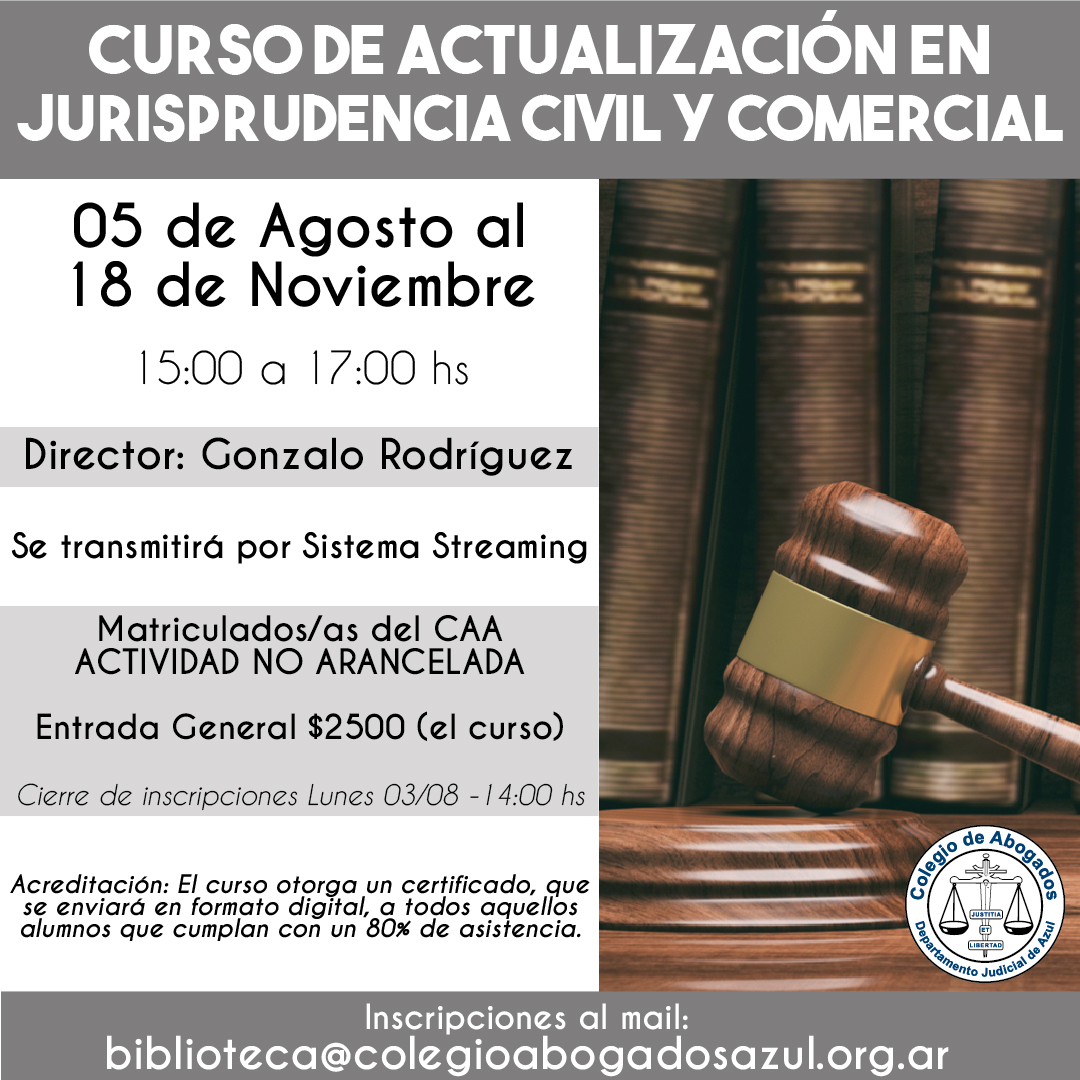 Inscripción abierta hasta el lunes 03/08 hasta las 14hs, por mail: biblioteca@colegioabogadosazul.org.ar