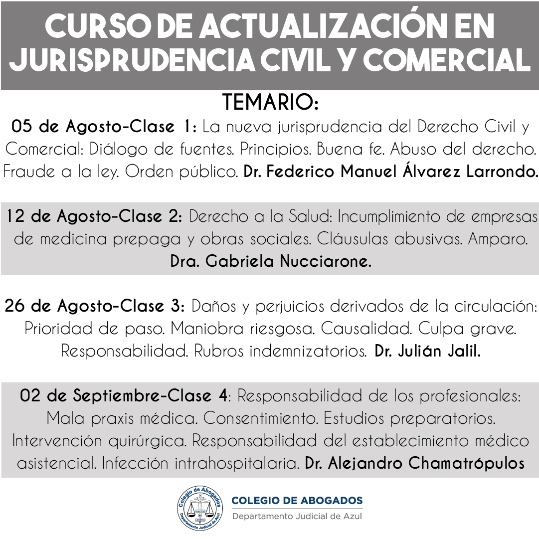 05 de Agosto.- Clase 1 - La nueva jurisprudencia del Derecho Civil y Comercial: Diálogo de fuentes. Principios. Buena fe. Abuso del derecho. Fraude a la ley. Orden público. Dr. Federico Manuel Álvarez Larrondo.