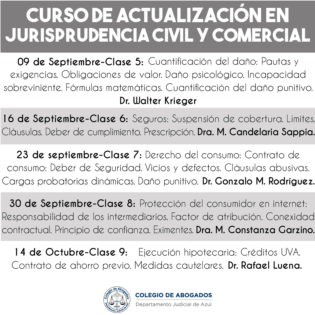 23 de septiembre.- Clase 7 - Derecho del consumo: Contrato de consumo: Deber de Seguridad. Vicios y defectos. Cláusulas abusivas. Cargas probatorias dinámicas. Daño punitivo. Dr. Gonzalo M. Rodríguez.
