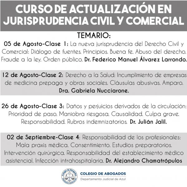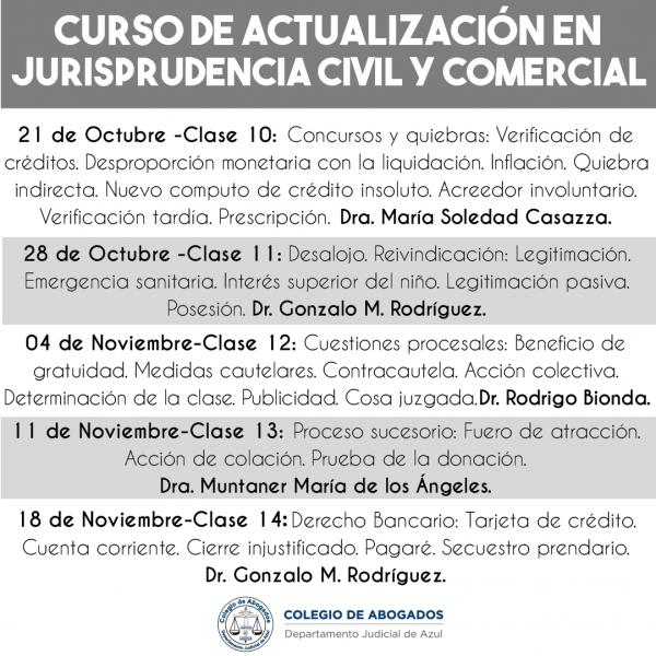 El curso consta de una revisión de casos relevantes sobre diferentes áreas del derecho civil y comercial, teniendo en cuenta los fallos dictados por diferentes Tribunales de Justicia durante los últimos dos años.