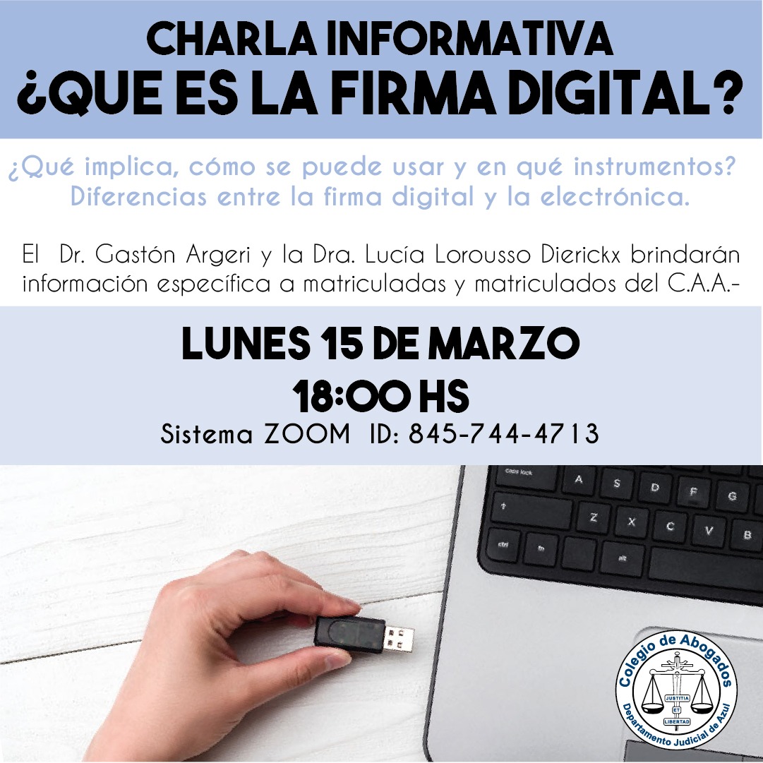 El Dr. Gastón Argeri y la Dra. Lucía Lorousso Dierickx brindarán información específica a matriculadas y matriculados del C.A.A, respecto de ¿Qué implica, cómo se puede usar y en qué instrumentos? Explicando además, las diferencias entre la firma digital y la electrónica.