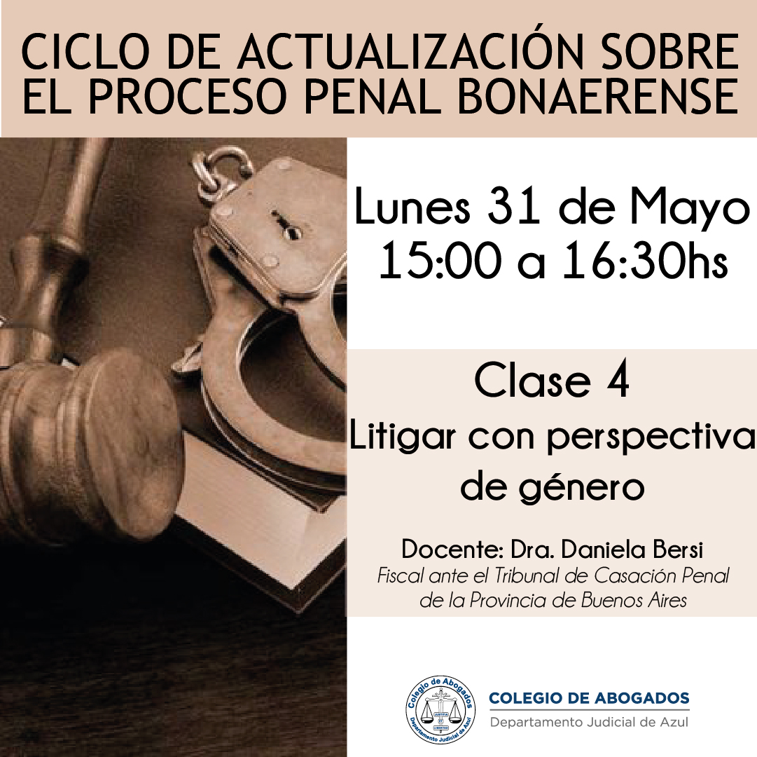 31/05.- CLASE N°4 “ Litigar con perspectiva de género” Dra. Daniela Bersi