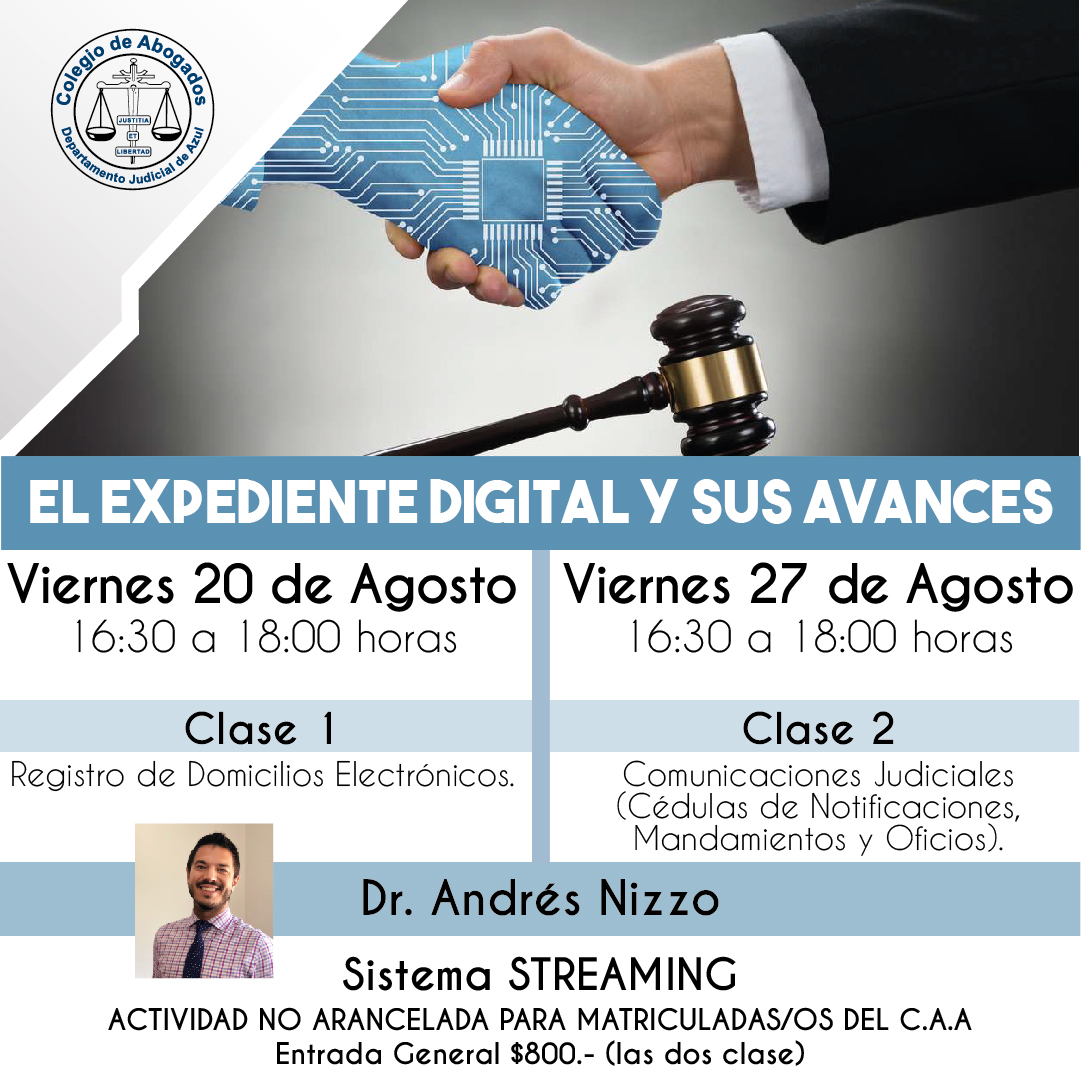 El Dr. Andrés Nizzo disertará sobre esta temática el viernes 20 y 27 de agosto de 16:30 a 18 hs, vía Streaming. La capacitación es no arancelada para matriculadas y matriculados. Para inscribite completá el formulario online, haciendo click aquí