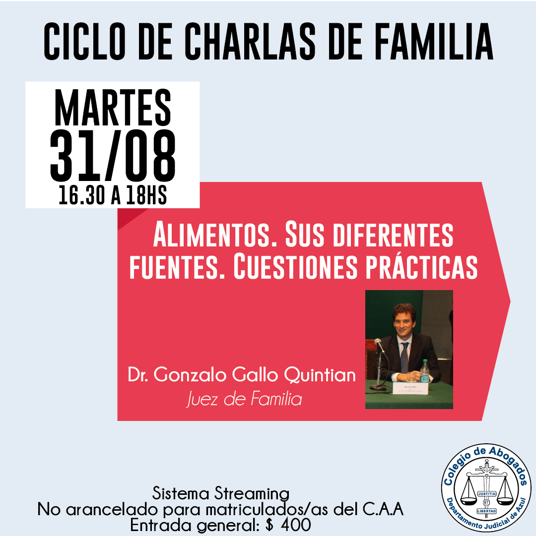 El 31 de agosto, el Dr. Gonzalo Gallo Quintian disertará sobre “Alimentos: sus diferentes fuentes y cuestiones prácticas”.