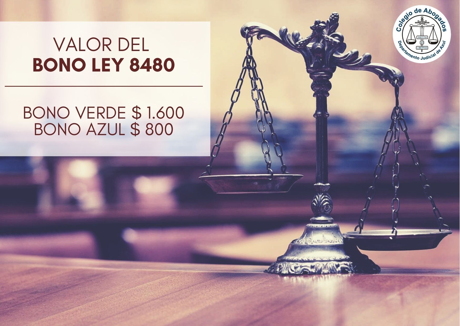 De acuerdo a lo dispuesto oportunamente por el Consejo Superior del Colproba, se establecen los siguientes valores para el Bono Ley 8480...