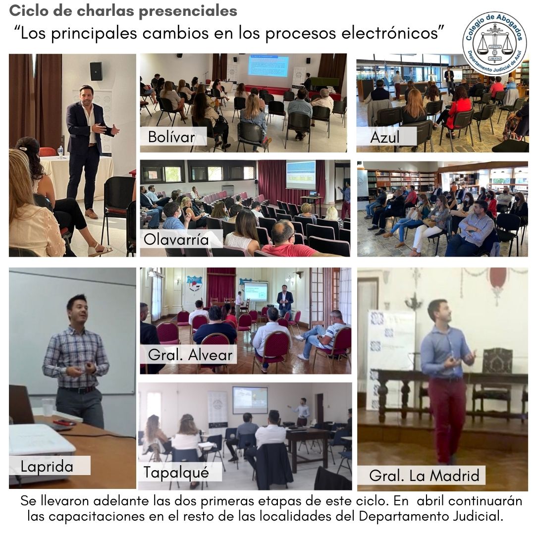 Finalizaron las dos primeras etapas de las charlas sobre "Los principales cambios en los procesos electrónicos", a cargo del Dr. Andrés Nizzo, que continuarán en abril alcanzando todas las localidades del Departamento Judicial Azul.