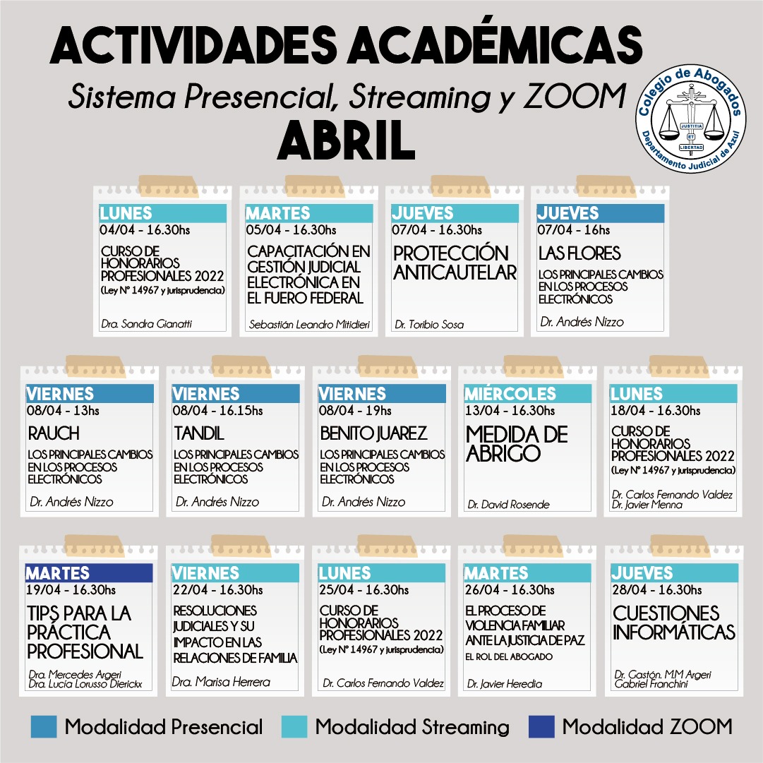 Ante cualquier duda, podés consultar a: secretariaacademica@colegioabogadosazul.org.ar