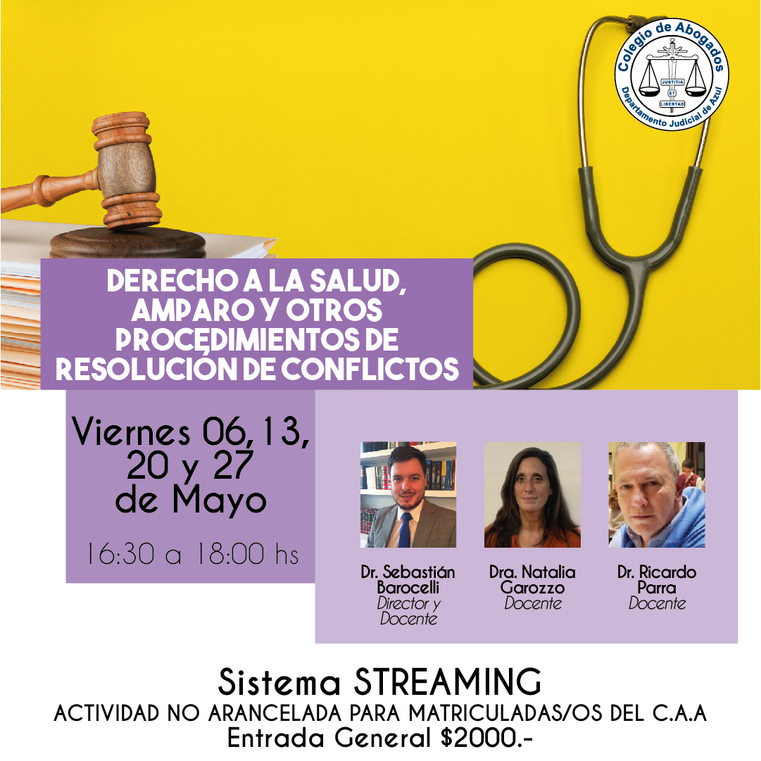 El mismo se llevará adelante los días 6, 13, 20 y 27 de mayo, de 16:30 a 18 horas, vía sistema streaming y contará con la dirección del Dr. Sebastián Barocelli quien será uno de los docentes junto a la Dra. Natalia Garozzo y el Dr. Ricardo Parra.