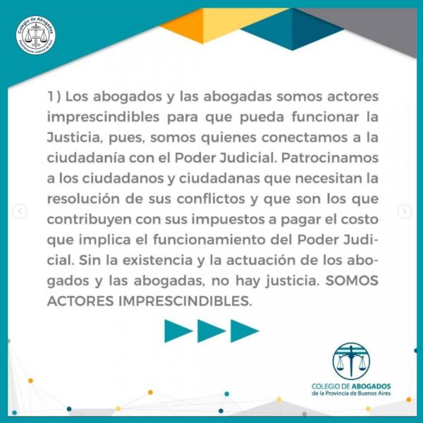 Los presidentes y presidentas de todos los Colegios de Abogados departamentales de la provincia de Buenos Aires que suscriben al pie, reunidos en pleno en el Consejo Superior hacen saber que: