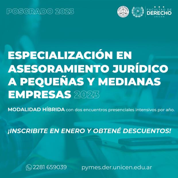 Para más información e inscripciones los interesados e interesadas deben ingresar a https://inscripciones.posgrado.der.unicen.edu.ar