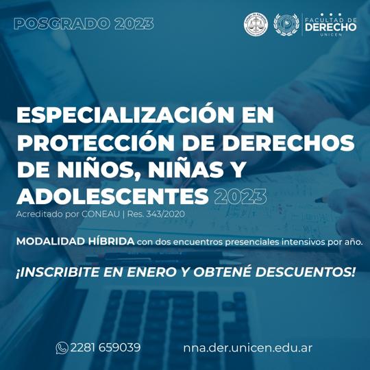 Finalmente, la Especialización en Protección de Derechos de Niños, Niñas y Adolescentes se generó a partir del reconocimiento institucional del espacio de vacancia a nivel regional en la formación de abogados/as especializados/as en la protección de los derechos de la infancia, rama del Derecho que resulta de la implementación de la figura del Abogado del Niño dispuesto por la Ley N° 14.568 de la provincia de Buenos Aires.