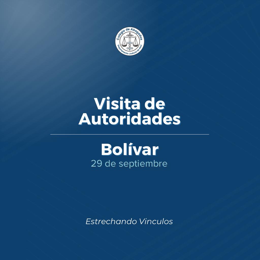 El próximo viernes 29 de septiembre autoridades del Colegio de Abogados Departamental visitarán la ciudad de Bolivar para interiorizares al respecto de las problemáticas y necesidades de las/os colegas que allí residen. El encuentro se realizará en 'Café de la ciudad' ubicado en Av. Alte Brown y Alsina a las 12.30 hs.