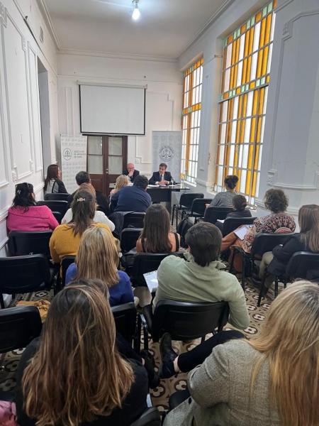 La charla se realizó el pasado martes y estuvo a cargo del titular del Juzgado de Familia Nro 2 de Tandil, Dr. Ramiro Saralegui y el titular del Juzgado de Garantías Nro 1 de Tandil, Dr. José Alberto Moragas.