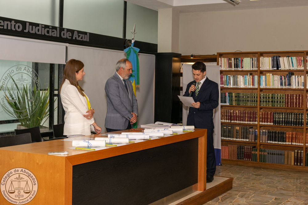 Este mediodía en la sede del Colegio de Abogados del Departamento Judicial de Azul la presidenta, Dra. María Fernanda Giménez acompañada por el secretario Dr. Leandro Prat, en representación del Consejo Directivo, dieron la bienvenida a nuevos/as matriculados/as que podrán ejercer la profesión.