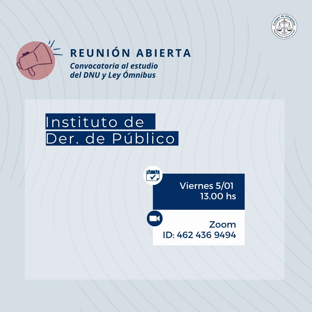 Instituto de Derecho Público: Viernes 5 de enero a las 13 horas Modalidad virtual mediante sistema Zoom. ID: 462 436 .9494