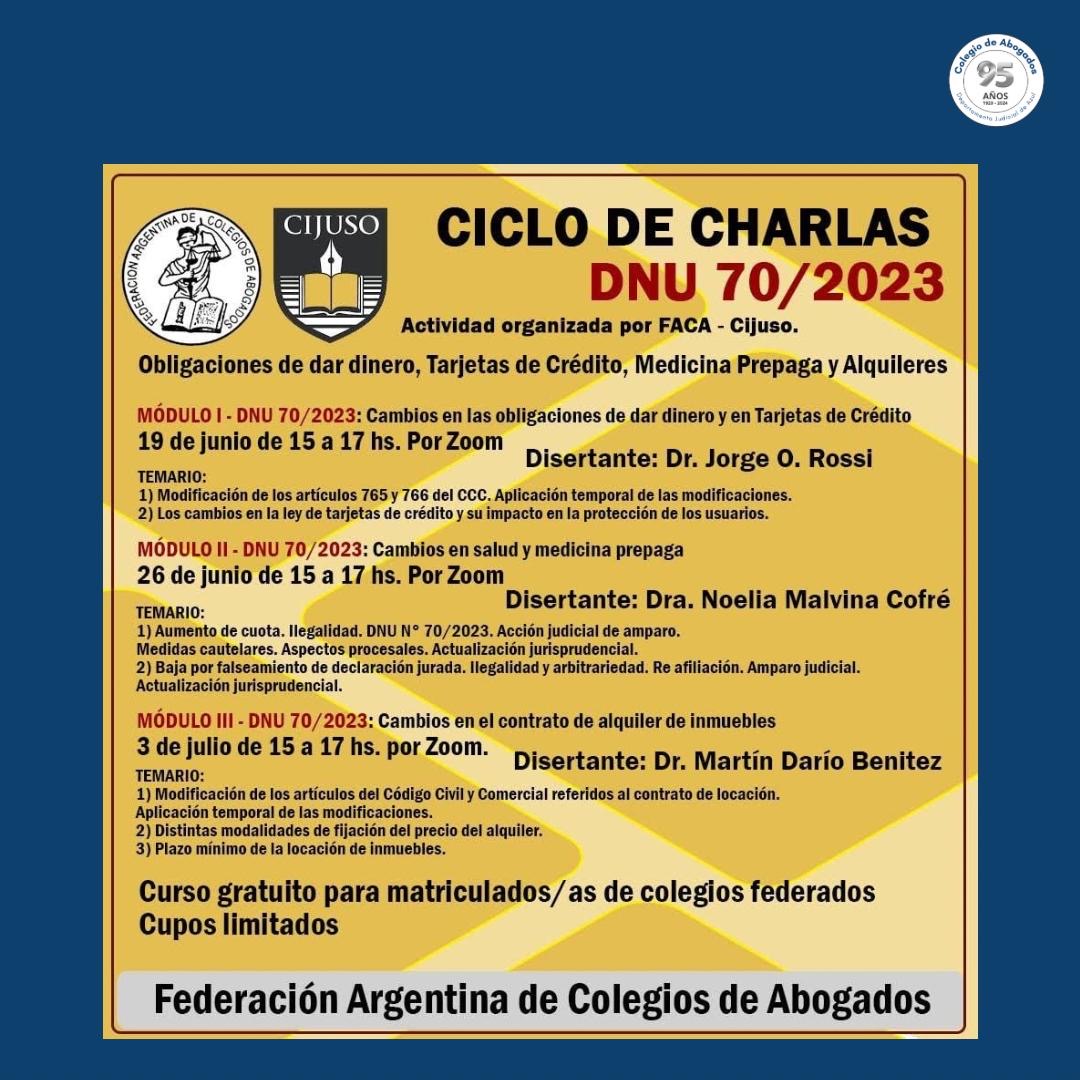 Se trata de una actividad organizada por FACA y la Fundación Cijuso que se desarrollará en 3 módulos temáticos. Las charlas se realizarán en modalidad virtual y comenzarán el 19 de junio a las 15 hs.