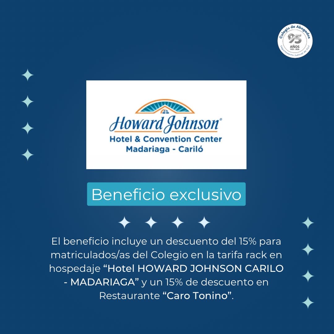 La firma de este beneficio otorga a matriculados/as del Colegio con matrícula al día un 15% de descuento aplicable en la tarifa rack en hospedaje y un 15% de descuento en la gastronomía del Restaurante "Caro Tonino".
