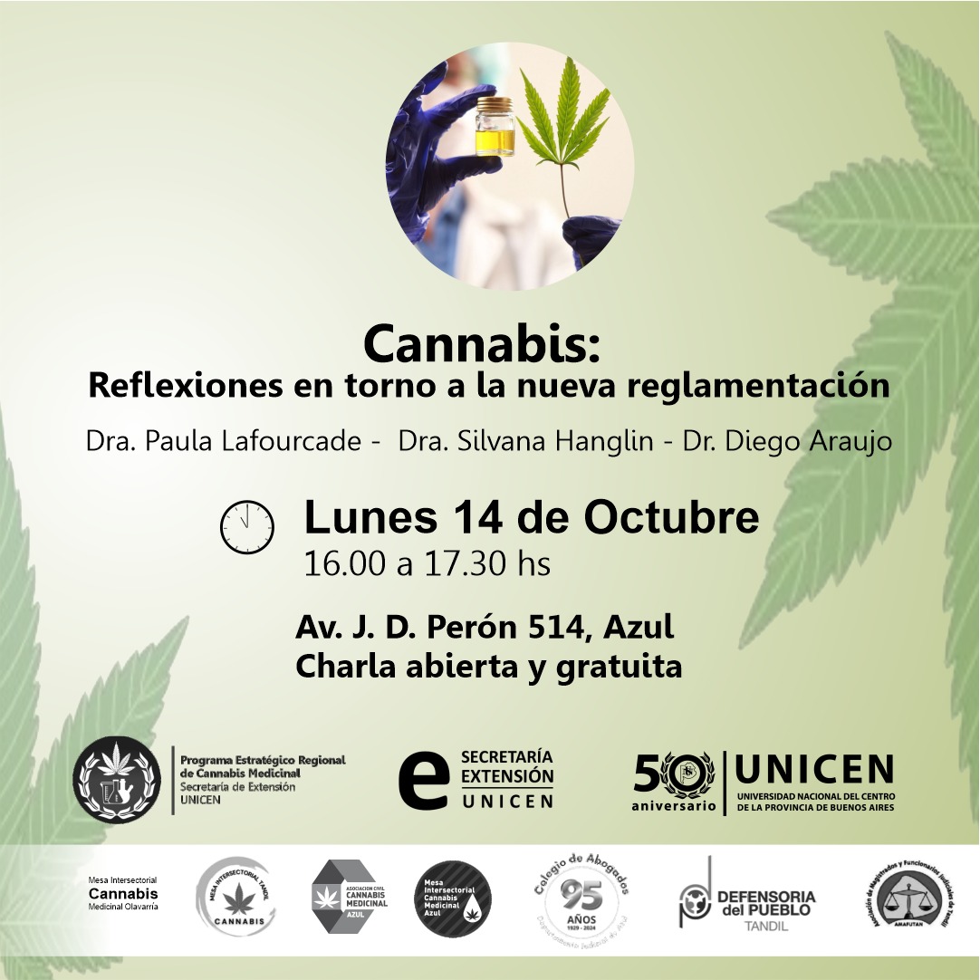 El lunes 14 de octubre se realizará una jornada sobre "Cannabis: reflexiones en torno a la nueva reglamentación". Disertarán el defensor oficial penal y titular de Amafutan de Tandil, Diego M. Araujo; la titular de la defensoría del pueblo de Tandil, Paula J. Lafourcade y la abogada Silvana Hanglin. El encuentro se realizará de 16 hs a 17.30 hs en el Colegio.