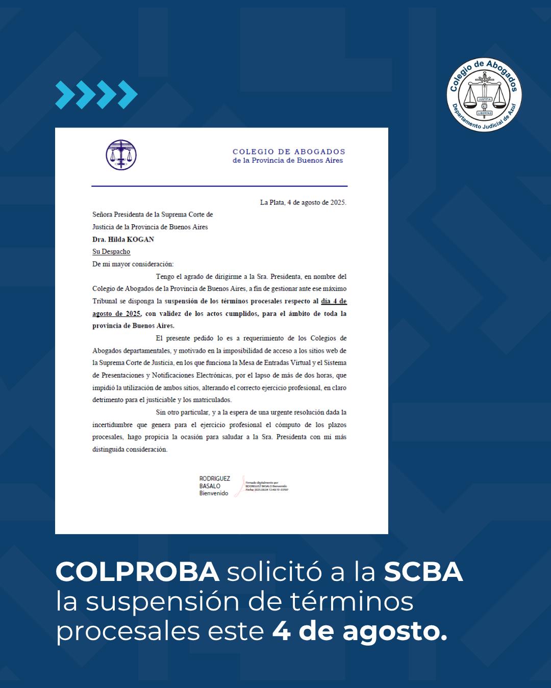 La solicitud se debe a la imposibilidad de poder acceder durante casi toda la mañana a los sitios web de la SCBA en los que funciona la Mesa de Entradas Virtual y el Sistema de Presentaciones y Notificaciones Electrónicas.