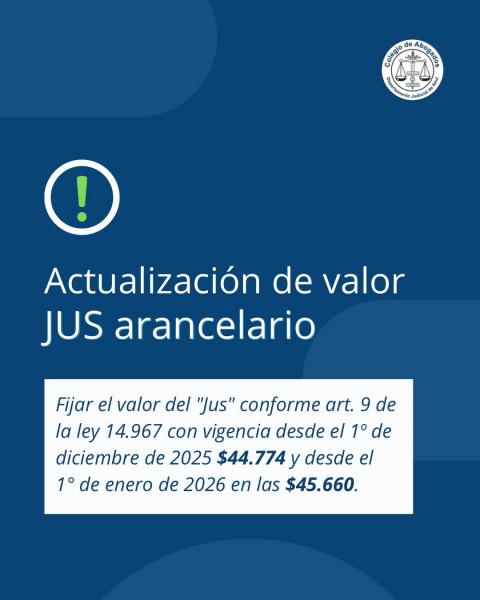 Se definió mediante un nuevo acuerdo de la SCBA. Allí se establece el nuevo valor desde el 1ro de diciembre en $44.774. Además se fijó el valor del JUS desde el 1ro de enero en $45.660.