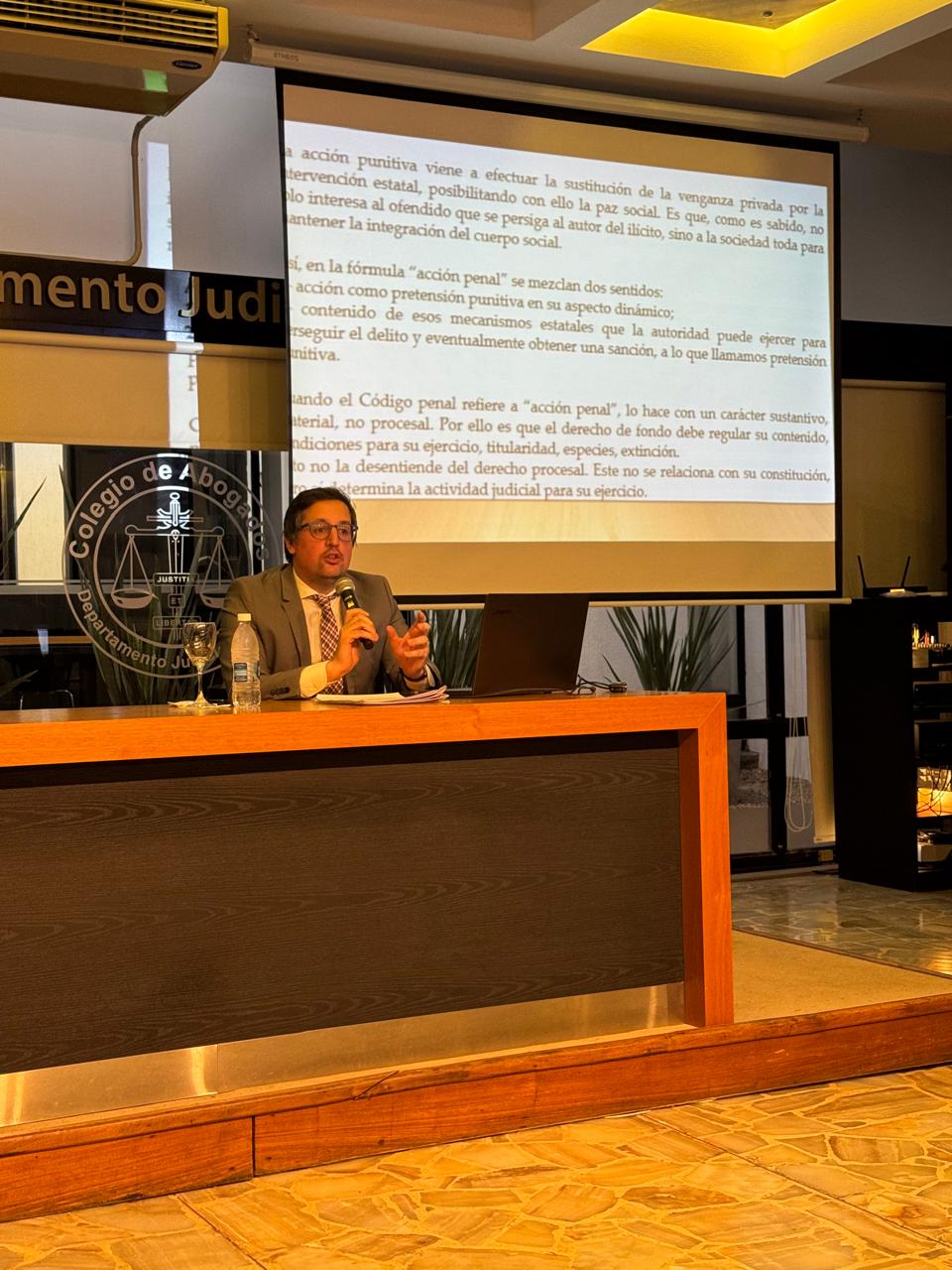 La disertación estuvo a cargo del Dr. Albano Gallicchio, juez del Tribunal Criminal Nº 2 del Departamento Judicial de Azul, quien compartió su experiencia y conocimientos sobre un tema de suma relevancia jurídica y social.