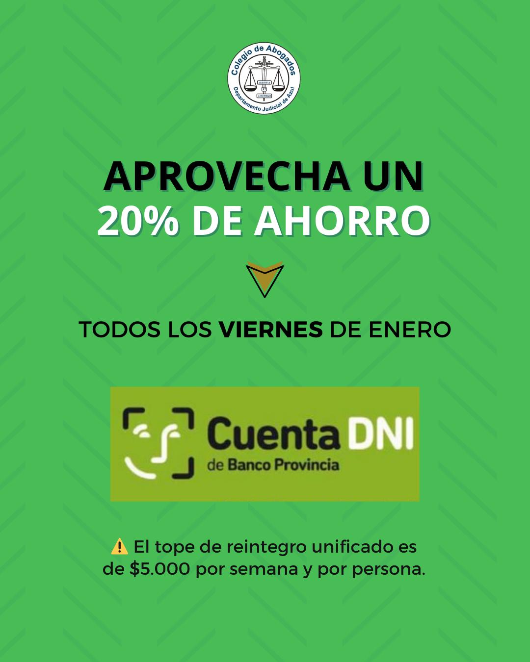 Todos los viernes de enero van a poder obtener el beneficio de 20% de ahorro en el abono de matrícula y/o la compra de token utilizando la billetera electrónica de Banco Provincia. En esta oportunidad, el tope de reintegro unificado es de $5.000 por semana y por persona.