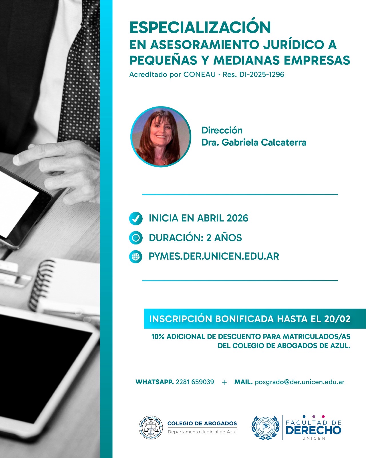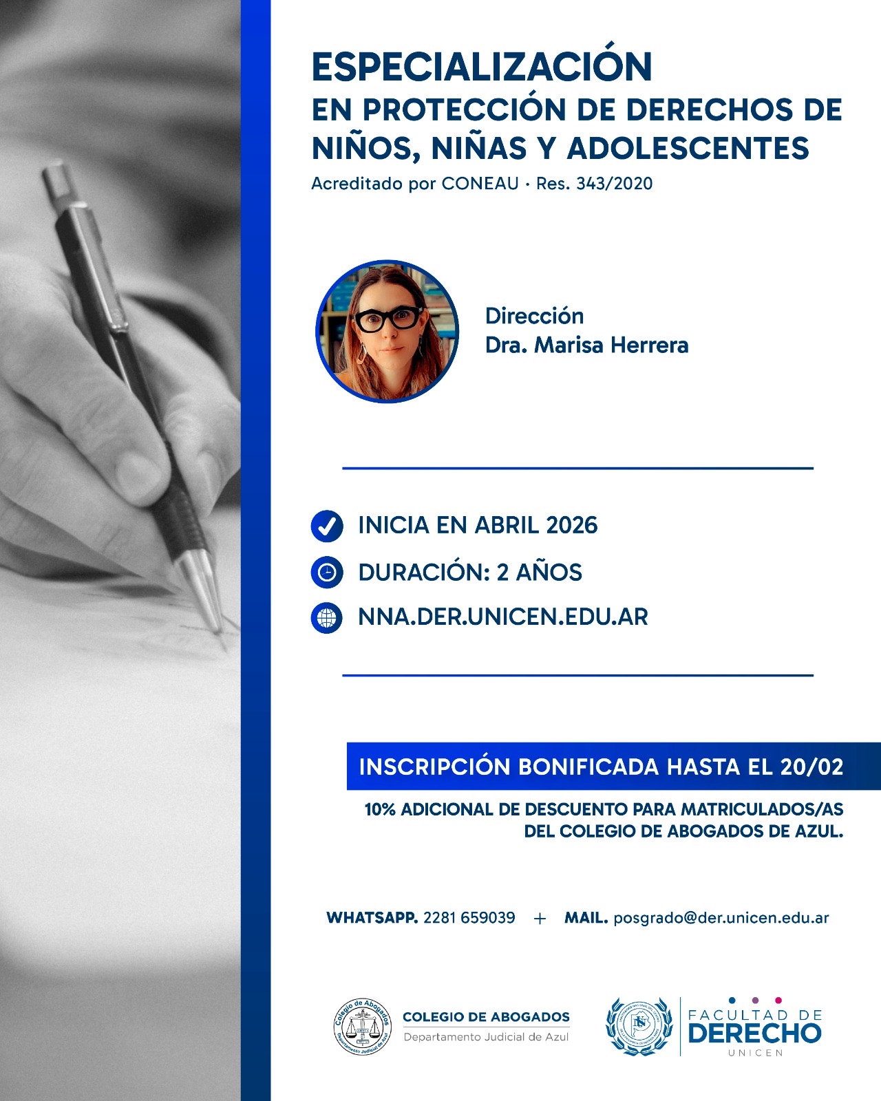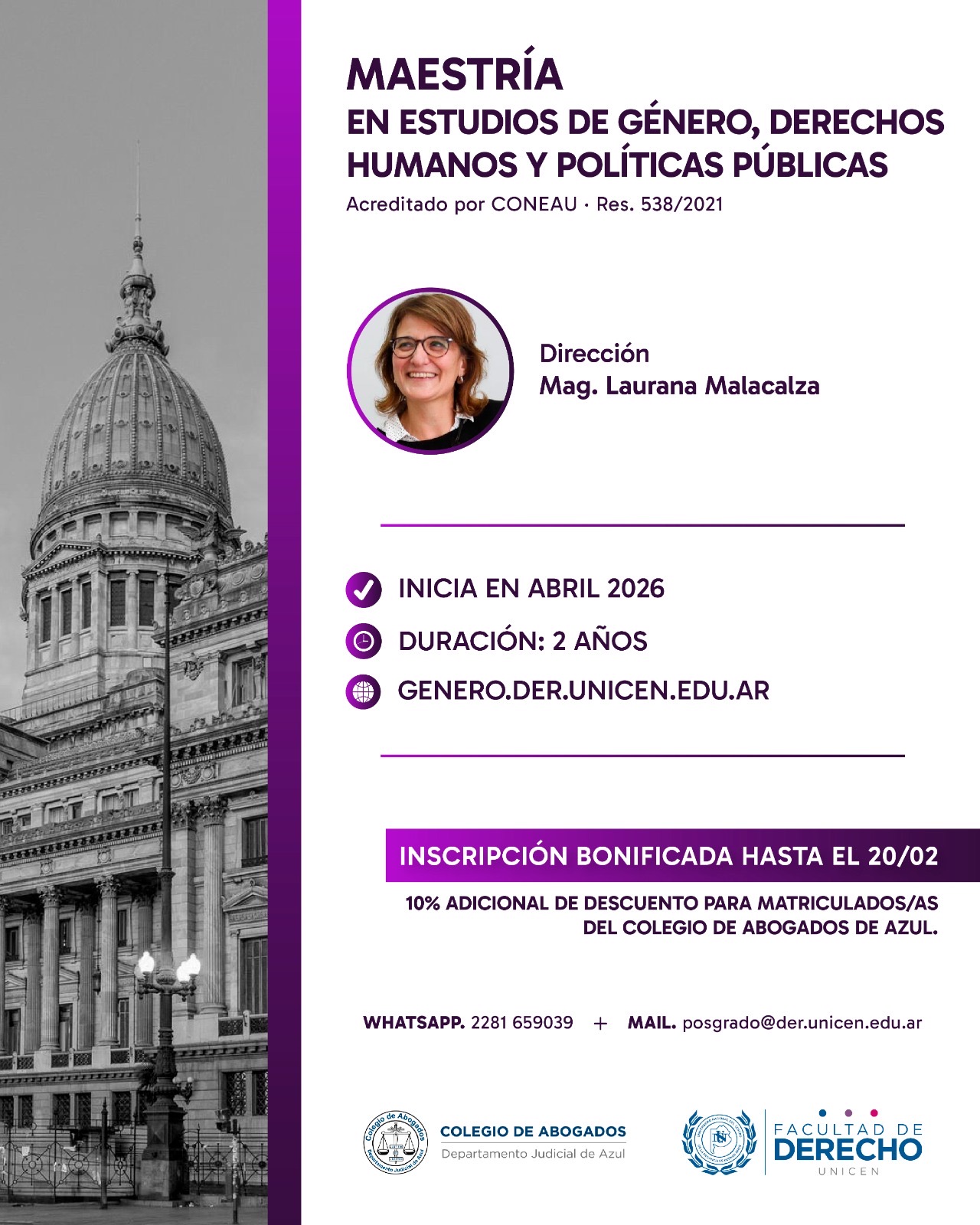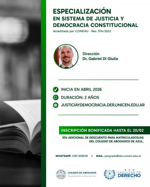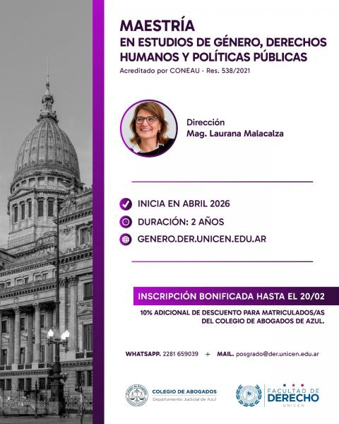 Si desean obtener más información, deben contactarse por correo a posgrado@der.unicen.edu.ar
