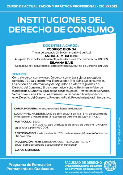 Inscripción: 5 al 15 de abril de 2013. Enviar datos personales a secyt@der.unicen.edu.ar