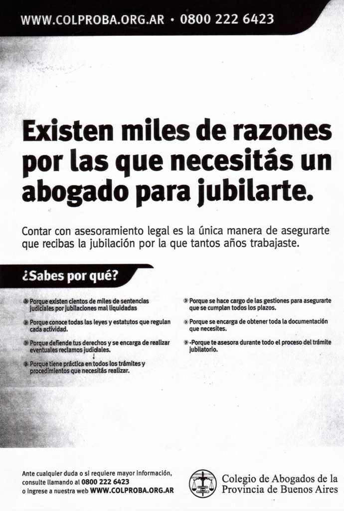 El Colegio de Abogados de la Provincia de Buenos Aires (COLPROBA) envió una carta documento al director de la ANSES, con fecha 3 de junio de 2013, por la campaña publicitaria vergonzosamente agraviante contra los abogados, organizada desde el Ente.