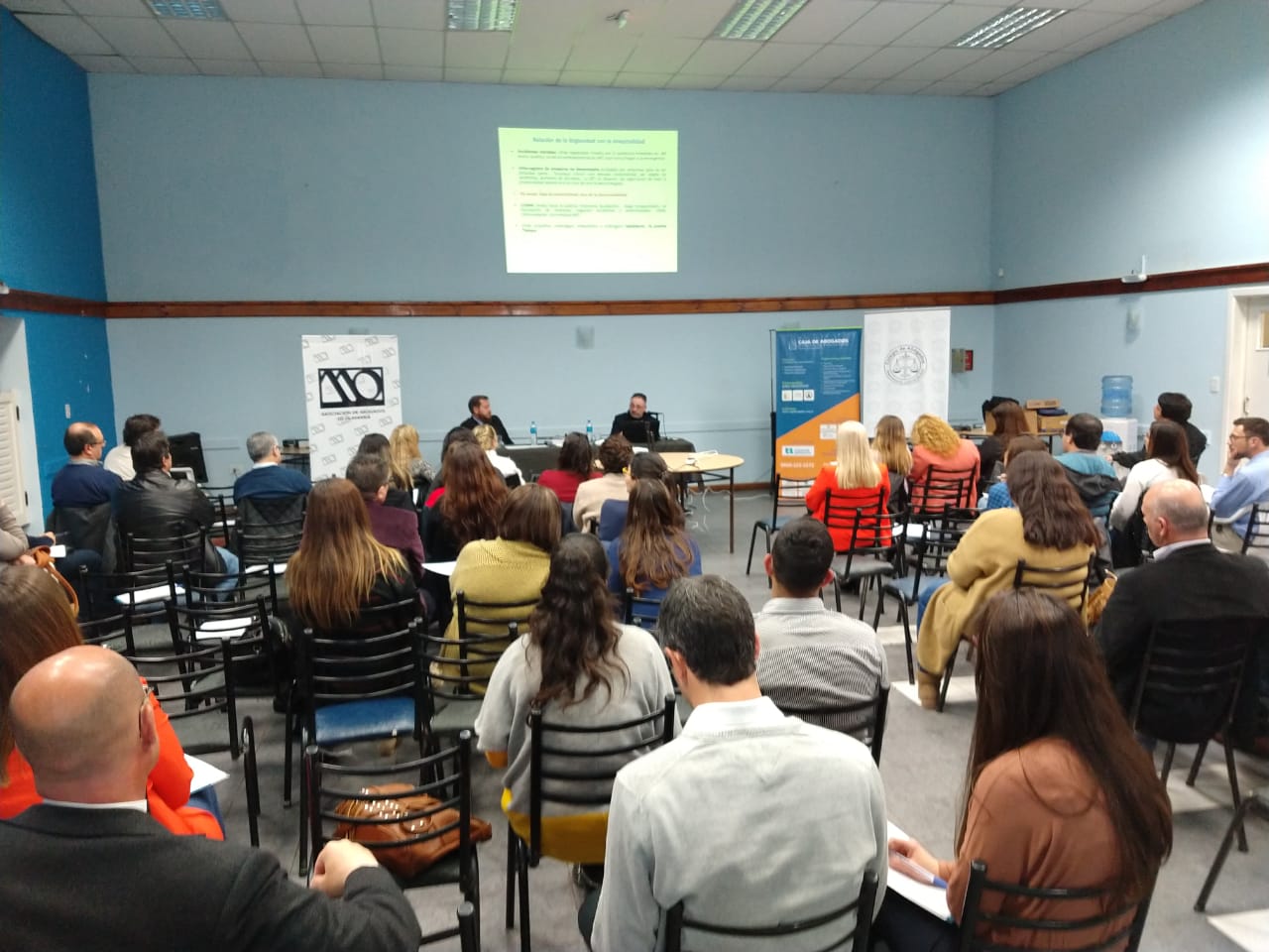 A continuación, el Dr. Horacio Schick (abogado laboralista, docente Universitario de Posgrado, especialista en el tema de accidentes y enfermedades del trabajo) comenzó su disertación para abordar la temática Actualidad en materia de Riesgos del Trabajo” dando lugar a un enriquecedor debate e intercambio con los profesionales presentes.