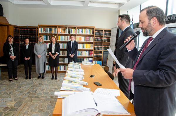 El Presidente Dr. Gastón Argeri, junto al Secretario del Consejo Directivo, Dr. Mauro Grandicelli, tomaron juramento de ley a las nuevas abogadas, abogados y procuradoras que ejercerán la profesión en la provincia de Buenos Aires el martes 3 de septiembre, en la sede del Colegio de Abogados del Departamento Judicial de Azul.