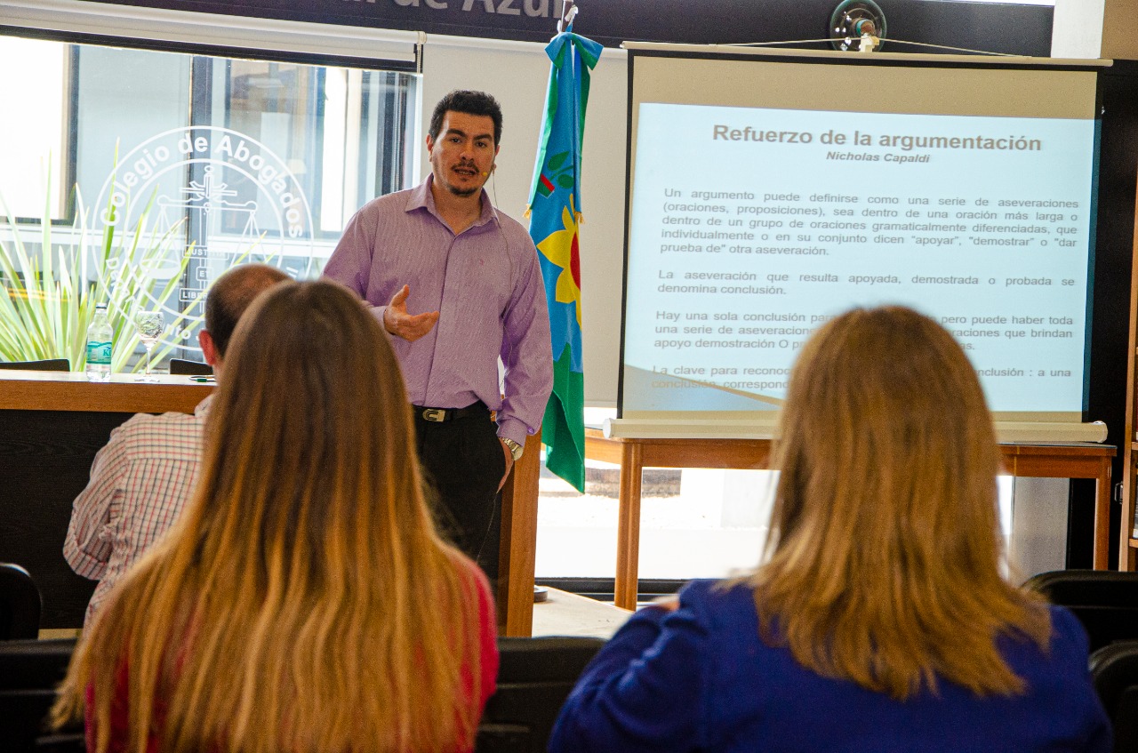 Continuando con las jornadas de formación que, durante todo el año, el Colegio de Abogados Departamental pone a disposición de abogadas y abogados para brindarles mayores herramientas en el ejercicio de la profesión, se dictó el Taller de Oratoria Forense que contó con destacada participación e interés de abogadas y abogados que se capacitaron en forma presencial en la sede del Colegio Departamental y en forma virtual, vía streaming desde todas las localidades del Departamento Judicial, sin necesidad de viajar.