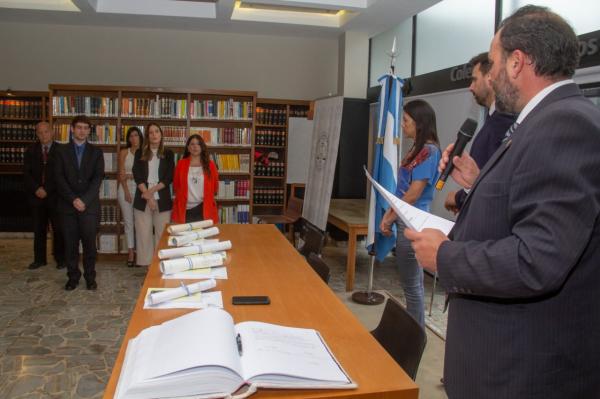 El acto se realizó en la sede del Colegio de Abogados Departamental, donde las autoridades felicitaron personalmente a las nuevas matriculadas y matriculados en nombre del Consejo Directivo, dándoles la bienvenida a la Dra. María Eugenia Lazarte de Azul, la Dra. Victoria Confalonieri de Tandil, la Dra. Stefanía Lanzillota de Azul, el Dr. Bruno Giuliano Vapore de Tandil y el Dr. Guillermo Juan Tiscornia de Olavarría.