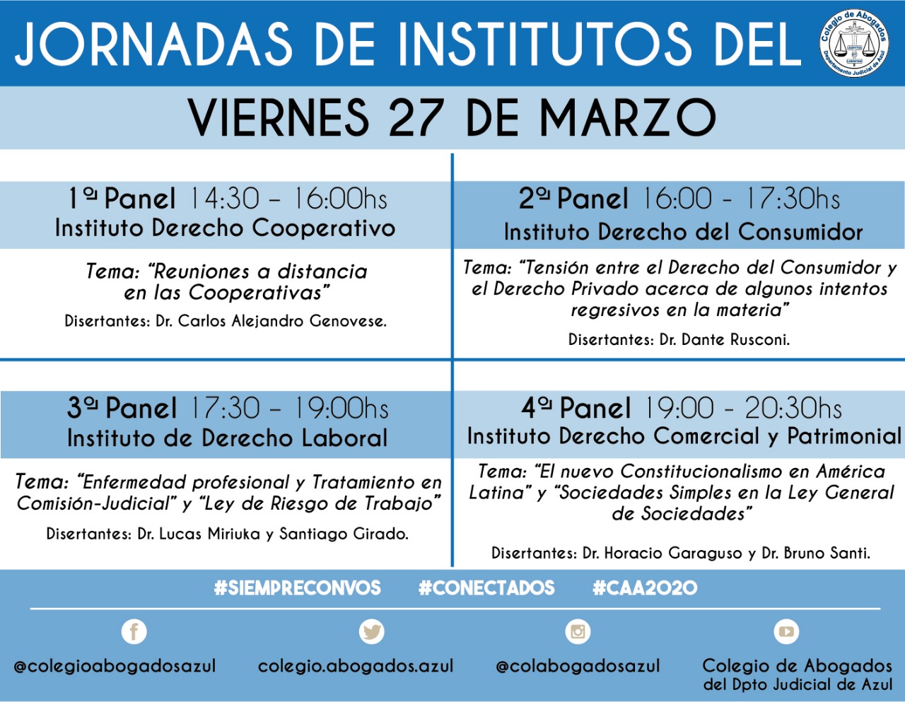 1º Panel 14:30 – 16:00 Instituto Derecho Cooperativo.