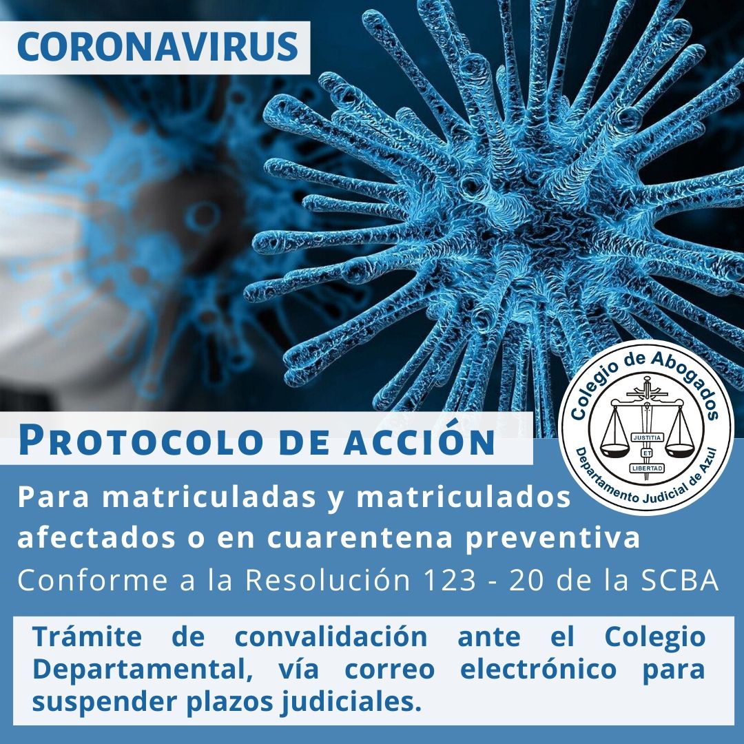 Ante la situación creada por la epidemia del coronavirus, habiéndose tomado conocimiento de las disposiciones adoptadas por la SCBA, el COLPROBA, solicitó por nota ingresada el 11/3/20, que se contemplase mediante una Resolución específica, la situación de aquellos abogados y abogadas que hayan regresado de viaje del exterior de los países indicados por la OMS como mayormente afectados, como así también de quienes hayan sido contagiados en el ámbito local o se encuentren incluidos en los grupos de riesgos.