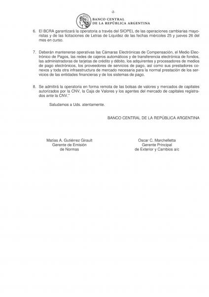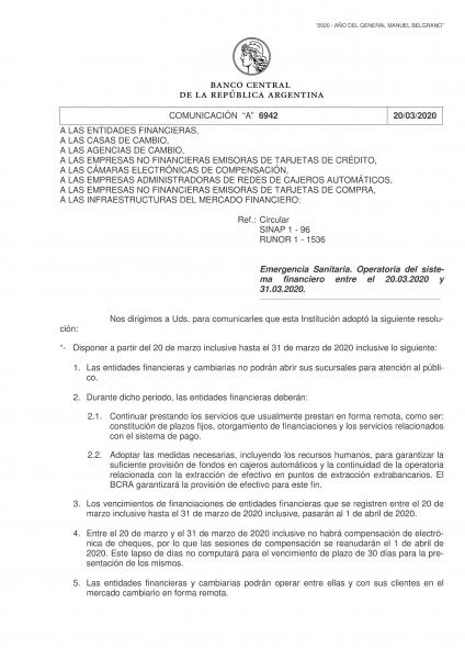 Se dispone que las entidades financieras y cambiarias no podrán abrir sus sucursales para la atención al público. Además se establecen las diferentes modalidades para continuar prestando sus servicios, en forma remota.