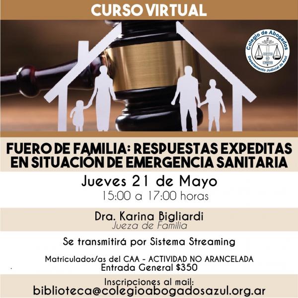 La Dra. Karina Bigliardi, Jueza de Familia del Departamento Judicial de La Plata, disertará sobre esta temática el jueves 21/05 de 15 a 17hs, vía streaming. No arancelada para matriculadas y matriculados. Inscripciones. biblioteca@colegioabogadosazul.org.ar